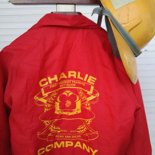 Je vous présente donc , une veste imperméable ayant appartenu à un personnel de la compagnie d'entrainement des pompiers de l'USMC de San Diego , pour l'époque , je pense aux années 80 .